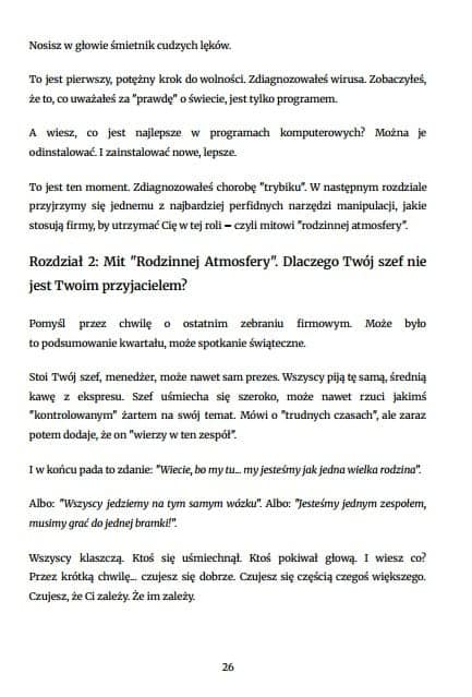 Firma to nie rodzina. Firma to system transakcyjny. Ta książka to Twoja instrukcja obsługi tego systemu. To nie jest kolejny nudny poradnik. To Twoja zbrojownia, która nauczy Cię, jak nie dać się zwolnić, jak walczyć o swoje pieniądze i jak odzyskać godność.